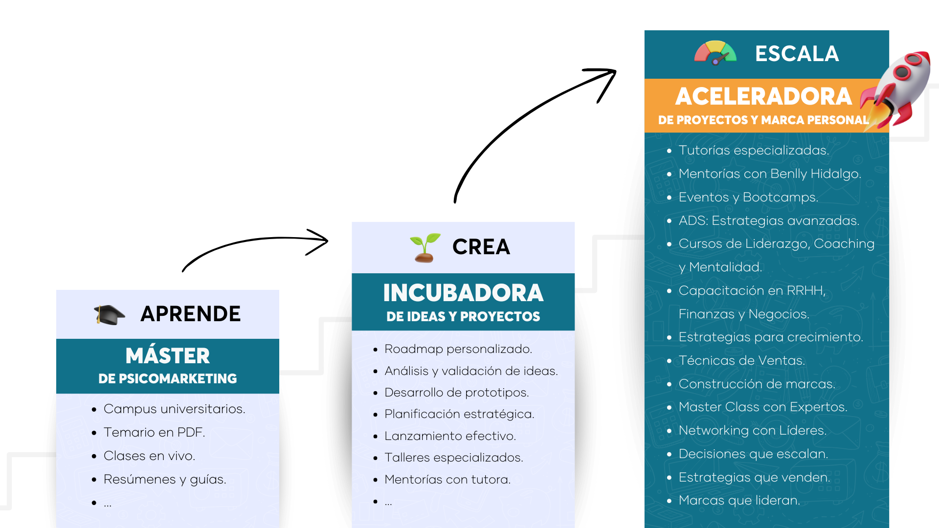 Acceso a todos los conocimientos y herramientas que necesitas para dominar la psicología, comunicación y marketing digital.